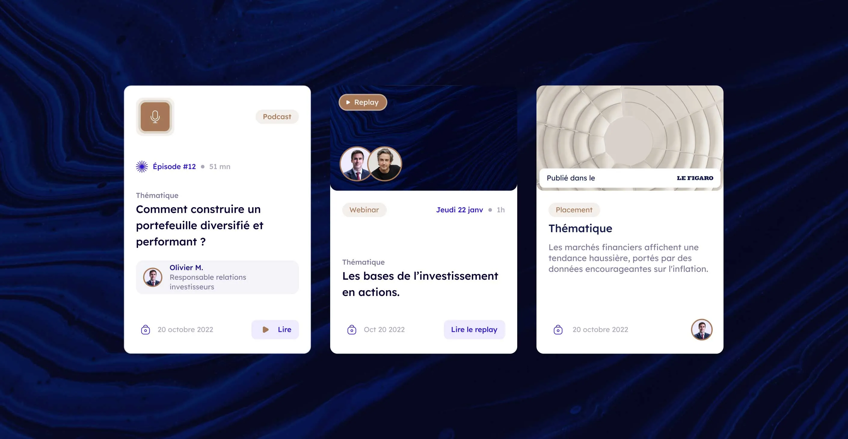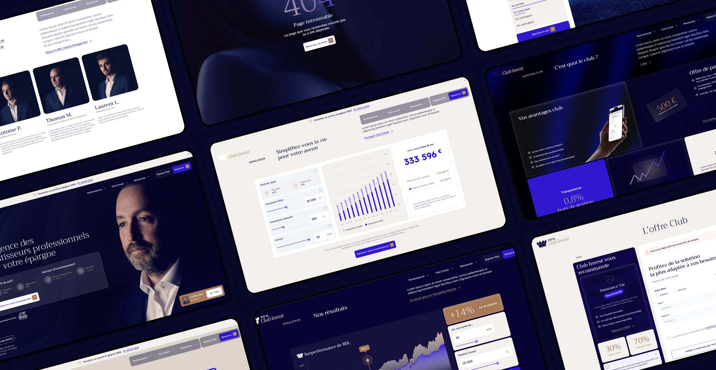 Glucoz a pensé l’expérience Club Invest comme un produit 100% digital, en structurant les parcours utilisateurs, en clarifiant les informations clés (performance, frais, expertise), et en créant une interface visuelle à la fois moderne et professionnelle pour inspirer confiance et favoriser l’engagement.