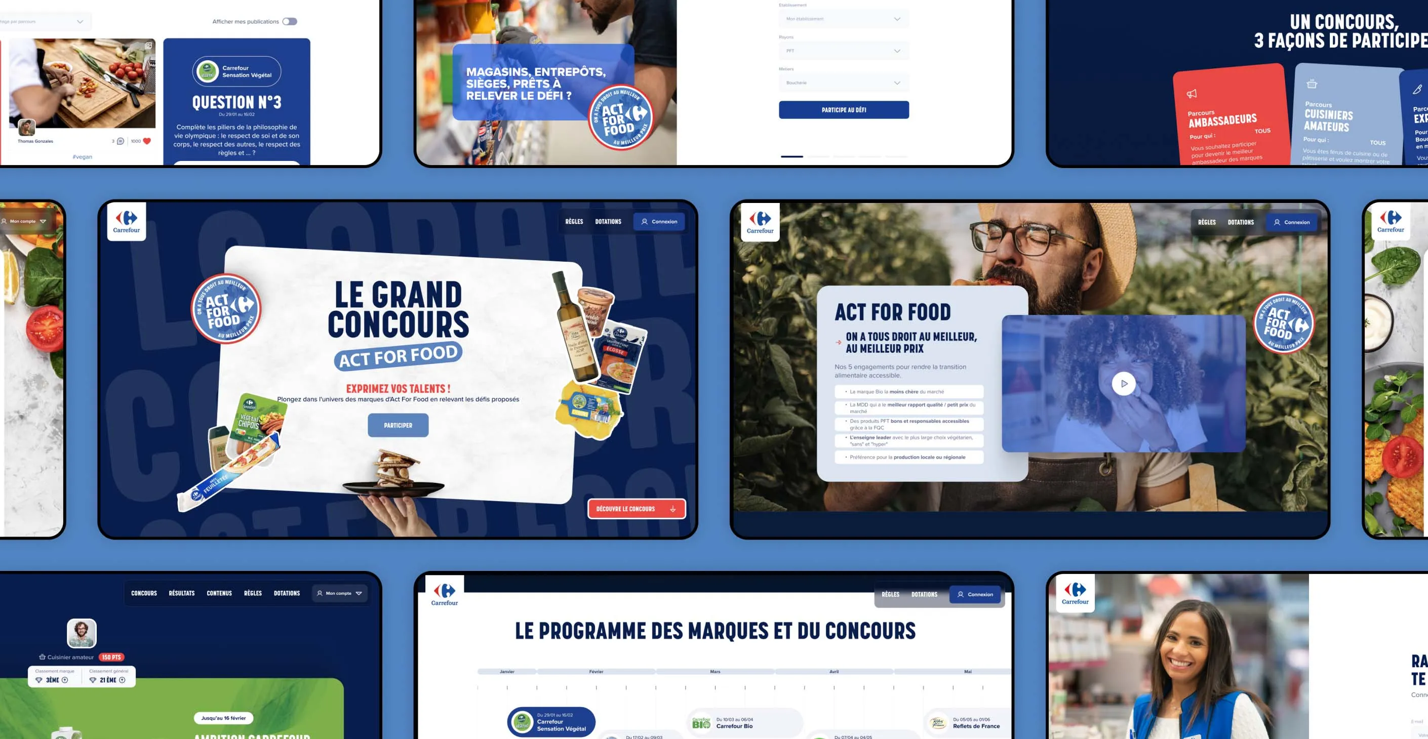 Act for Food est le programme de Carrefour dédié au'Mieux Manger'. Glucoz a conçu la plateforme Grand Concours Act For Food pour Carrefour, un espace digital pensé pour engager tous les collaborateurs du groupe à travers des défis. Le projet comprend :