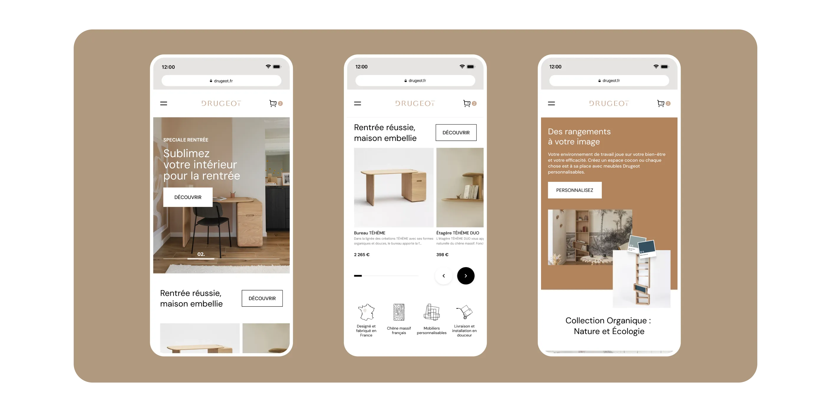 Pour Drugeot Manufacture, créateur de mobilier design 100 % français, nous avons conçu un nouveau site e‑commerce alliant élégance, fluidité et performance. L’objectif : sublimer l’univers de la marque tout en offrant une expérience d’achat intuitive et engageante, adaptée aux attentes des particuliers comme des professionnels.