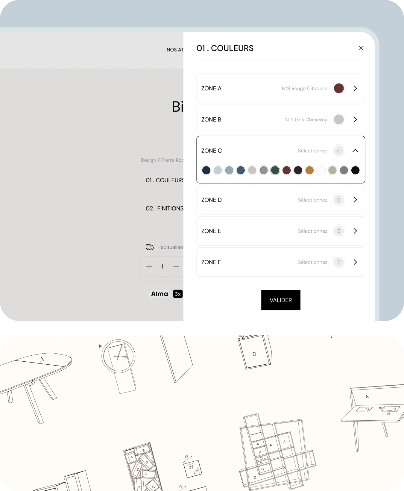Pour sublimer l’univers du mobilier, nous avons mis l’accent sur des visuels immersifs, des détails matière soignés et une personnalisation mise en valeur. Chaque étape du parcours a été pensée pour conjuguer esthétisme et fluidité.