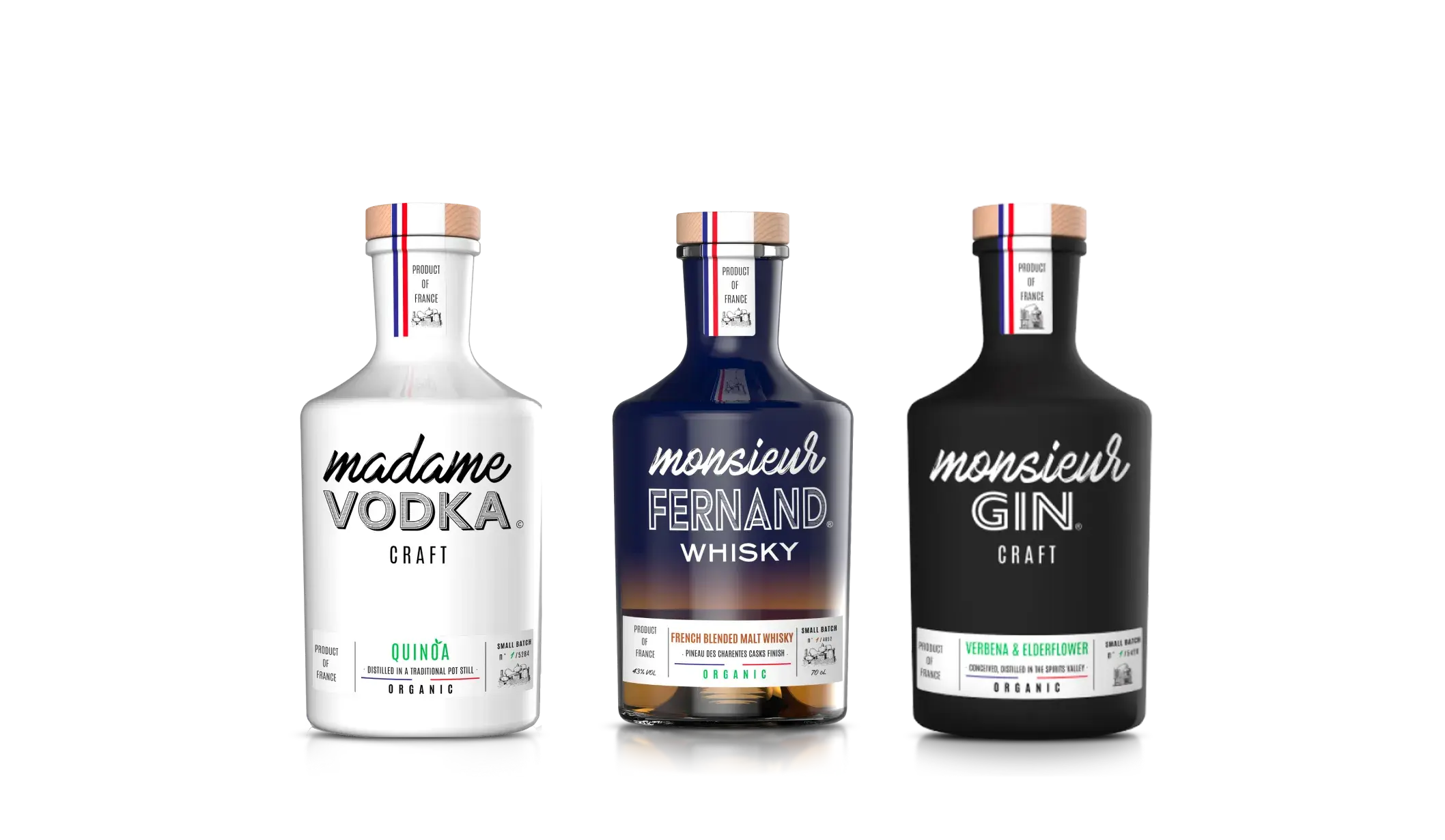 C’est l’histoire de Madame Vodka, Monsieur Gin et Monsieur Fernand Whisky. 3 personnalités organiques, bio et fortes en caractères. Leur mission : faire plaisir à leurs clients avec un produit français, responsable, singulier et de grande qualité.