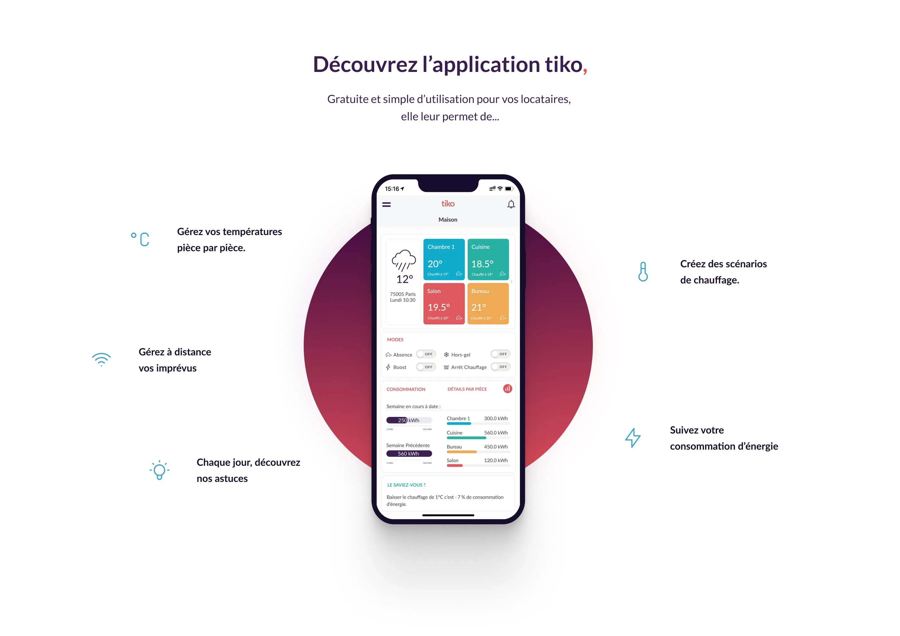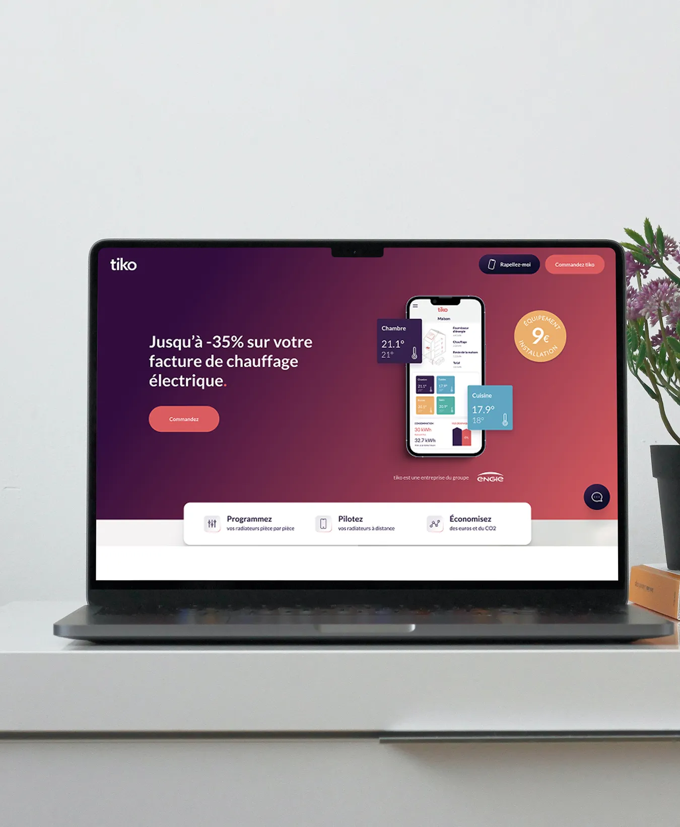 tiko est une start-up tech spécialisée dans le développement d’équipements intelligents favorisant la sobriété énergétique des logements. Inconnue sur le marché Français, tiko nous a demandés de l’accompagner dans le lancement de la solution.