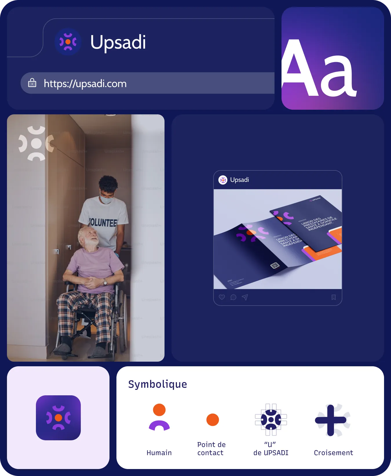 L'Union des Prestataires de Santé à Domicile Indépendants (UPSADI), syndicat professionnel de référence syndicat de référence, souhaitait se doter d’un territoire visuel et digital à la hauteur de son rôle : représenter 450 entreprises et défendre les intérêts de 4 millions de patients pris en charge.